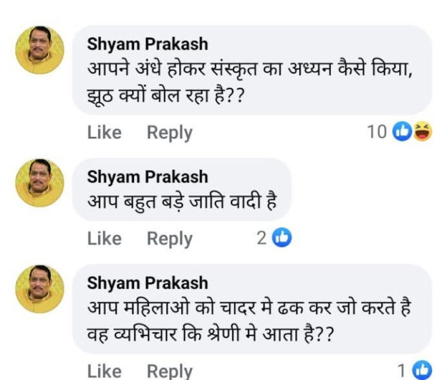 Hardoi : अरे विधायक जी माफी तो मांग लो, विधायक श्याम प्रकाश द्वारा संत रामभद्राचार्य पर टिप्पणी के बाद सफाई पर बोले FB यूजर