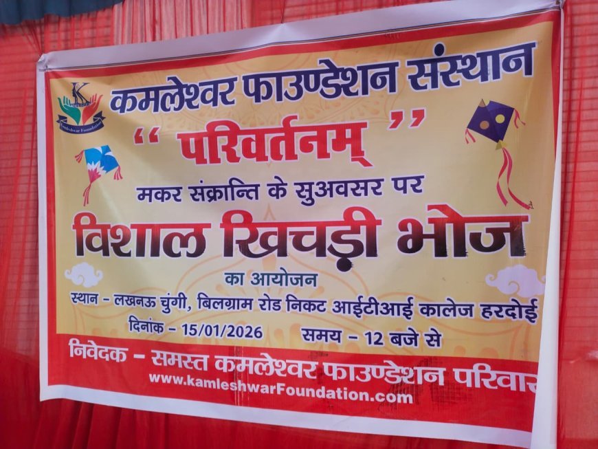 Hardoi : मकर संक्रांति पर कमलेश्वर फाउंडेशन ने आयोजित किया विशाल खिचड़ी भोज, सैकड़ों श्रद्धालुओं ने प्रसाद पाया
