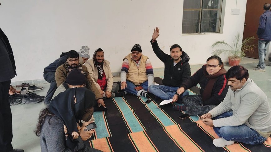 हरदोई: एंटी करप्शन की कार्रवाई के विरोध में लेखपालों ने दिया धरना
