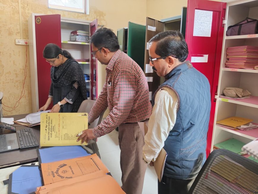 प्रशासनिक भवन में अभिलेखों की व्यवस्था, परिसर की सफाई, लोगों की शिकायतों के निपटारे की स्थिति और चल रही योजनाओं की प्रगति देखी गई।
