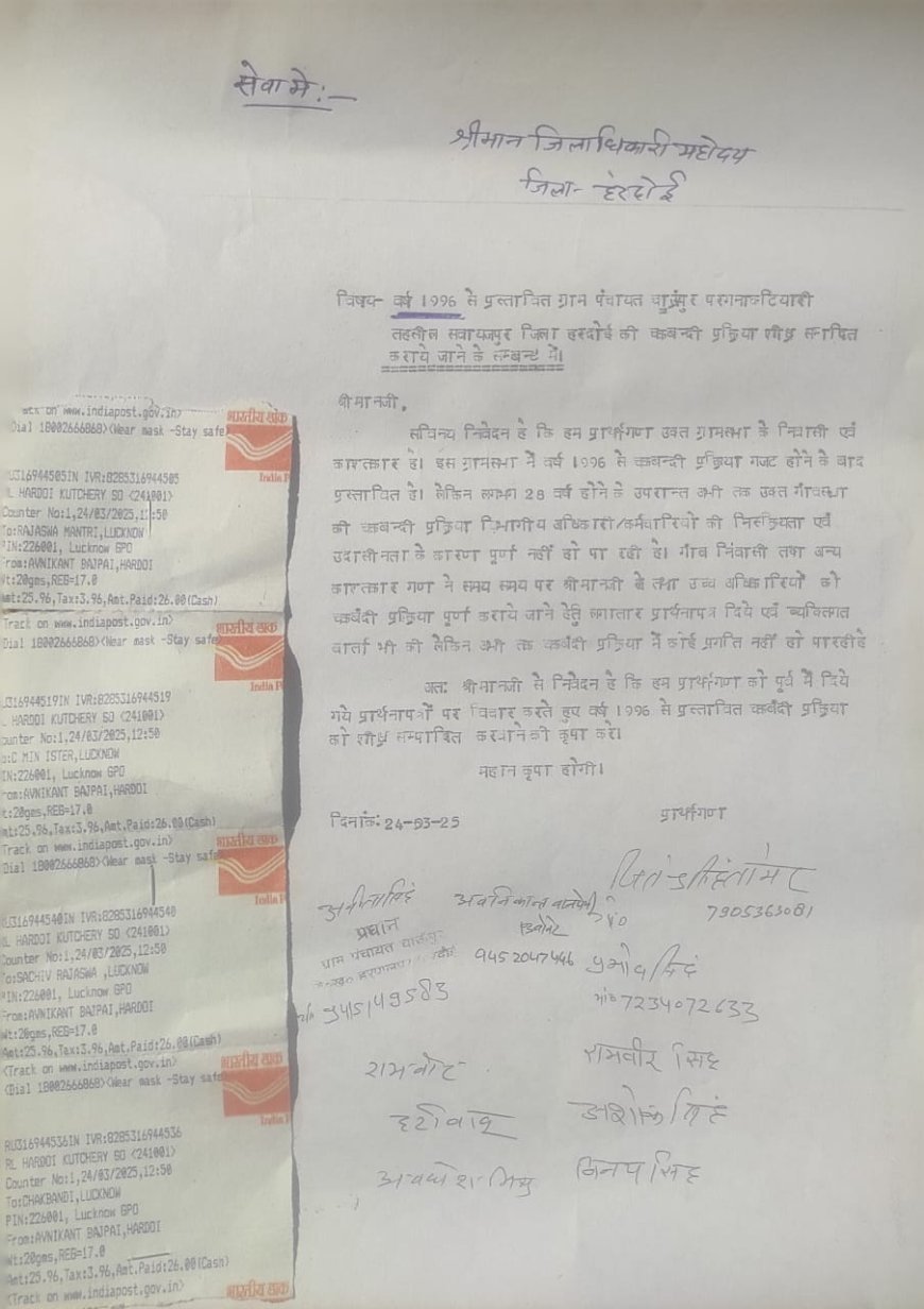 Hardoi News: 28 सालों से प्रशासनिक अव्यवस्था के मकडजाल में फंसी चांउपुर गांव की चकबंदी, DM से गुहार लगाई