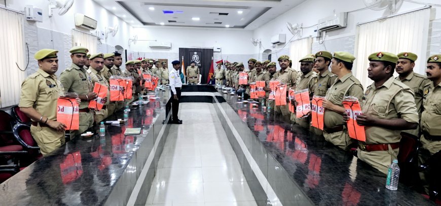 जिसके अंतर्गत सभी अधि0/कर्म0 गणों को यातायात नियमों, मोटर व्हीकल एक्ट, यातायात उपकरण तथा सड़क दुर्घटना के समय गोल्डन आवर के संबंध में आवश्यक जानकारी प्रदान की गई। सभी यातायात पुलिस कर्मियों को रिफ्लेक्टिव जैकेट एवं रिफ्लेक्टिव टॉर्च वितरित की गई।