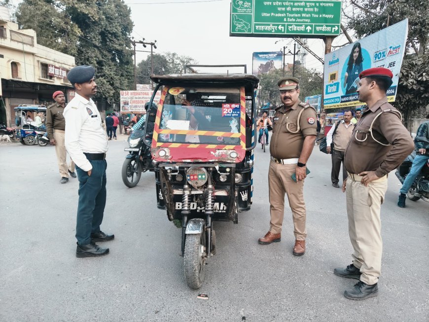 यातायात पुलिस द्वारा उक्त अभियान के दृष्टिगत जगह-जगह अभियान चलाकर 2798 ई- रिक्शा पर स्पीड लिमिट स्टीकर लगाये गये साथ ही बिना फिटनेश / बीमा / ड्राइविंग लाइसेंस, मो...