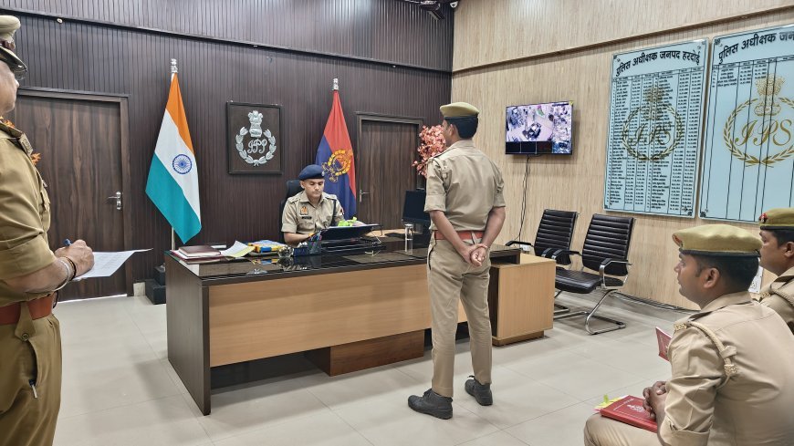Hardoi News: SP ने बीट आरक्षियों की बैठक ली, जनसुनवाई में 35 शिकायतें सुनीं तथा रात्रि नाकाबन्दी के दौरान बेरियर ड्यूटी का निरीक्षण किया