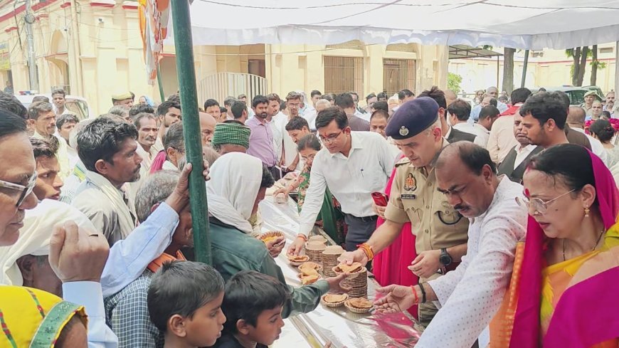 हरदोई : उत्तर प्रदेश के हरदोई जिले में बड़े मंगल के पावन अवसर पर कलेक्ट्रेट परिसर में आयोजित भंडारा वितरण कार्यक्रम में पुलिस अधीक्षक (एसपी) नीरज कुमार जादौन ने सक्रिय भागीदारी निभाई। यह आयोजन सामाजिक समरसता और धार्मिक एकता को बढ़ावा देने के उद्देश्य से किया गया, जिसमें जिले के गणमान्य व्यक्ति, प्रशासनिक अधिकारी, और स्थानीय नागरिक शामिल हुए।
