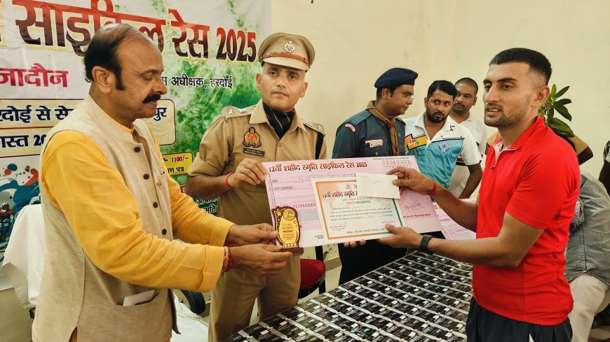 हरदोई : विकास खंड सांडी के सेमरिया स्थित शहीद स्मारक पर 79वें स्वतंत्रता दिवस के अवसर पर ध्वजारोहण और 12वीं शहीद स्मृति साइकिल रेस 2025 का आयोजन बड़े उत्साह के साथ किया गया। इस समारोह में पुलिस अधीक्षक नीरज कुमार जादौन और शहीद स्मारक के अध्यक्ष अभय शंकर गौड़ ने संयुक्त रूप से ध्वज फहराया और शहीदों को पुष्प अर्पित कर उनकी शहादत को याद किया। इस अवसर पर आयोजित 51 किलोमीटर लंबी साइकिल रेस में 19 प्रतिभागियों ने हिस्सा लिया, जिन्हें स्मृति चिन्ह देकर सम्मानित किया गया। यह आयोजन हर साल 15 अगस्त को नई पीढ़ी में आजादी के मूल्यों के प्रति जागरूकता बढ़ाने के लिए किया जाता है।