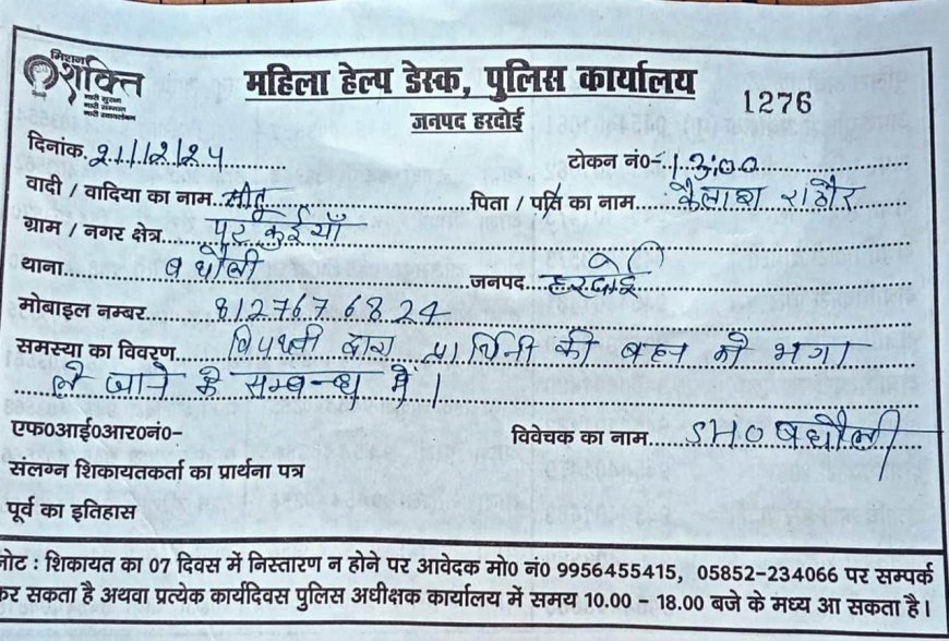 आगे बताया कि 18 अक्टूबर को मेरी बहन मोनी को वर्तमान प्रधान की गाड़ी में डालकर अगवा किया गया था जब वह शाम को शौच के लिए गई थी। थाने पर नहीं हुई थी सुनवाई जिसकी शिकायत पुलिस अधीक्षक हरदोई से की गई थी उनके निर्देशानुसार तीन लोगों पर मुकदमा लिखा गया था 24 10 2024 को पुलिस अधीक्षक हरदोई के संज्ञान में लेने के कारण 164 के बयान भी हुए थे।