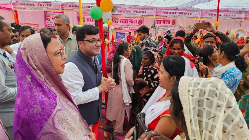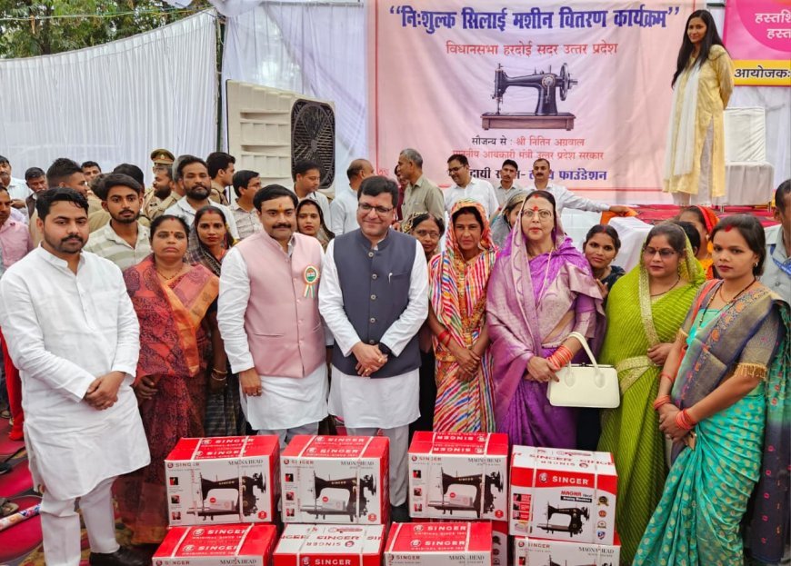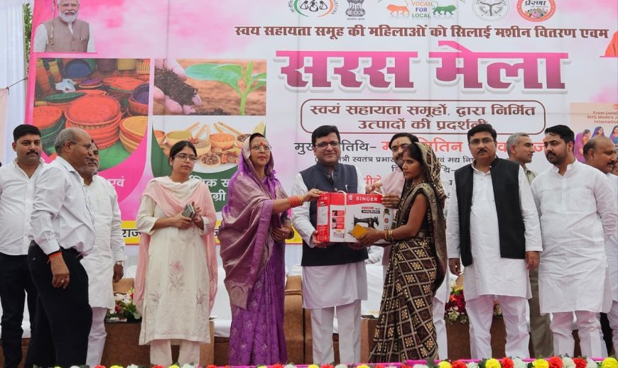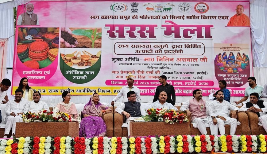 हरदोई के गांधी मैदान में उत्तर प्रदेश राज्य ग्रामीण आजीविका मिशन के तहत सरस मेला और सिलाई मशीन वितरण कार्यक्रम का आयोजन किया गया।