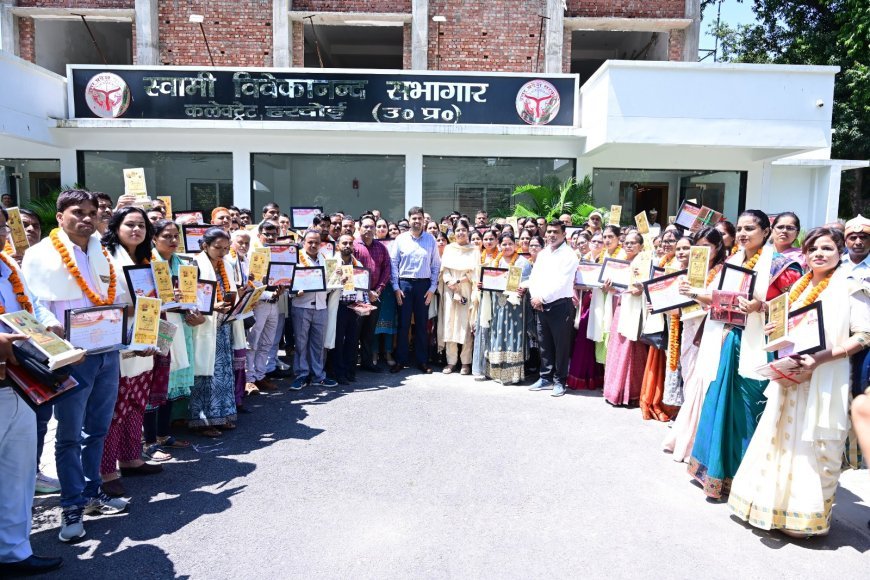 इस अवसर पर जिले के 100 उत्कृष्ट शिक्षकों, शिक्षा मित्रों और अनुदेशकों को प्रशस्ति पत्र, अंग वस्त्र, स्मृति चिन्ह, डायरी और पेन देकर सम्मानित किया गया। इसके अलावा, ऑपरेशन कायाकल्प के तहत परिषदीय विद्यालयों में बेहतर कार्य करने वाले 5 ग्राम प्रधानों और बच्चों की नियमित उपस्थिति सुनिश्चित करने वाले 5 अभिभावकों को भी सम्मानित किया गया।