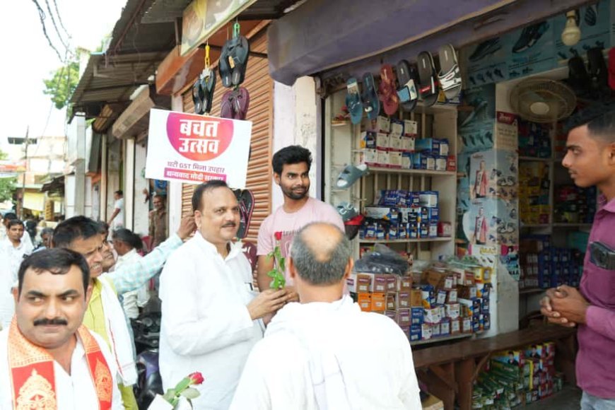हरदोई : सवायजपुर विधानसभा क्षेत्र के नगर पंचायत पाली के अंतर्गत कस्बा बाजार में विधायक माधवेन्द्र प्रताप सिंह रानू ने पार्टी पदाधिकारियों के साथ व्यापारियों से भेंट की। उन्होंने व्यापारियों को सम्मानित किया और मोदी सरकार द्वारा जीएसटी दरों में दी गई छूट के लिए आभार व्यक्त करने का संदेश दिया।