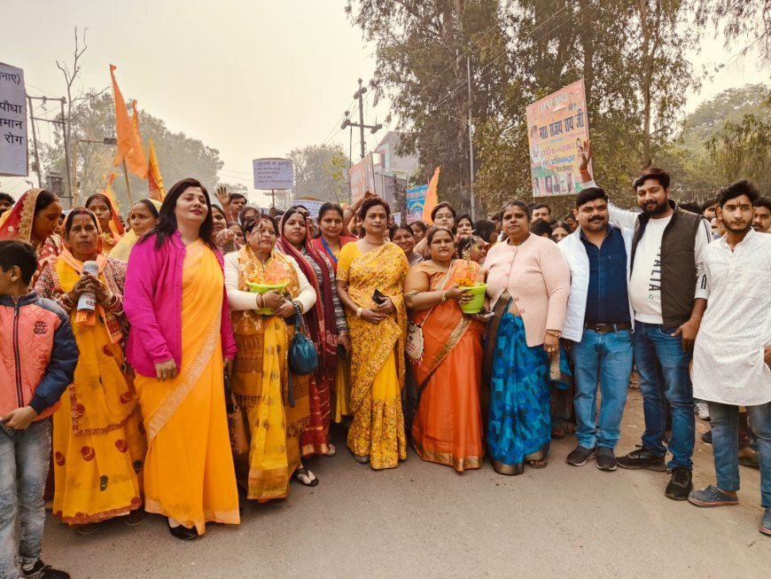 संस्थापिका व वरिष्ठ समाजसेविका निरमा देवी के नेतृत्व में यह पदयात्रा श्रीराम जानकी मंदिर से शुरू होकर लखनऊ चुंगी, सिनेमा चौराहा होते हुए बड़े चौराहे स्थित मंदिर के पास समाप्त हुई।