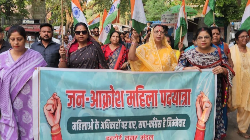 हरदोई में महिलाओं के सम्मान, अधिकारों और राजनीति में उनकी हिस्सेदारी तय करने वाले ऐतिहासिक नारी शक्ति वंदन अधिनियम के विरोध में जिला पंचायत अध्यक्ष प्रेमावती के नेतृत्व में महिलाओं ने पदयात्रा निकाली। जन आक्रोश महिला पदयात्रा के जरिए महिलाओं ने उन विपक्षी दलों के प्रति अपना कड़ा विरोध जताया, जिन्होंने संसद में महिलाओं को 33 प्रतिशत आरक्षण देने वाले इस कानून का विरोध किया था। पदयात्रा के दौरान भारी संख्या में मौजूद महिलाओं ने विपक्षी गठबंधन के रवैये को नारी शक्ति का अपमान बताया।