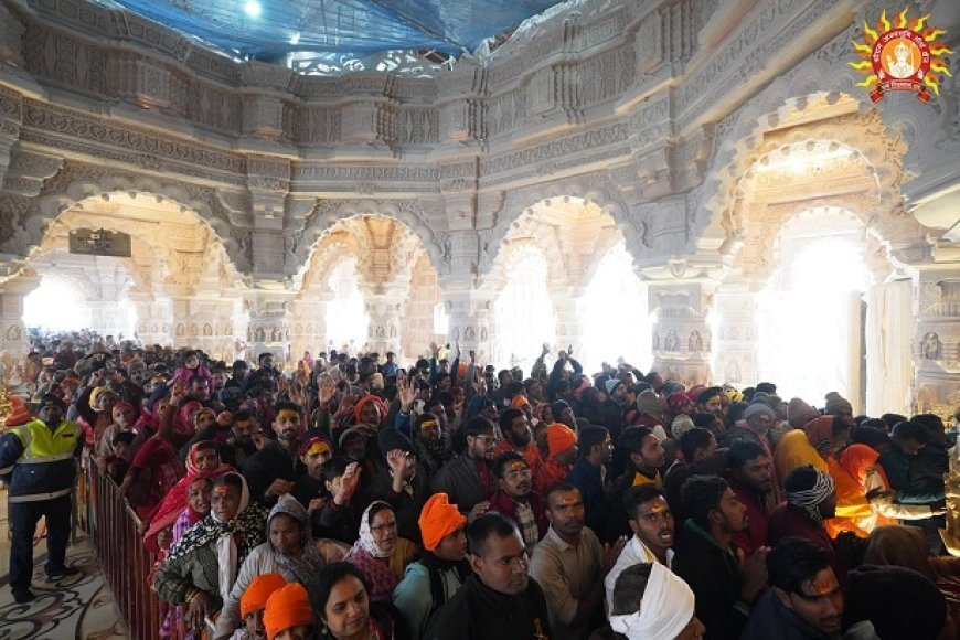 Ayodhya News: श्रीरामलला के मंदिर में उमड़ा जनसैलाब, जयकारों से गूंजी अयोध्या, बड़ी संख्या में रामनगरी पहुंचे श्रद्धालु, सुरक्षा के रहे इंतजाम कड़े।
