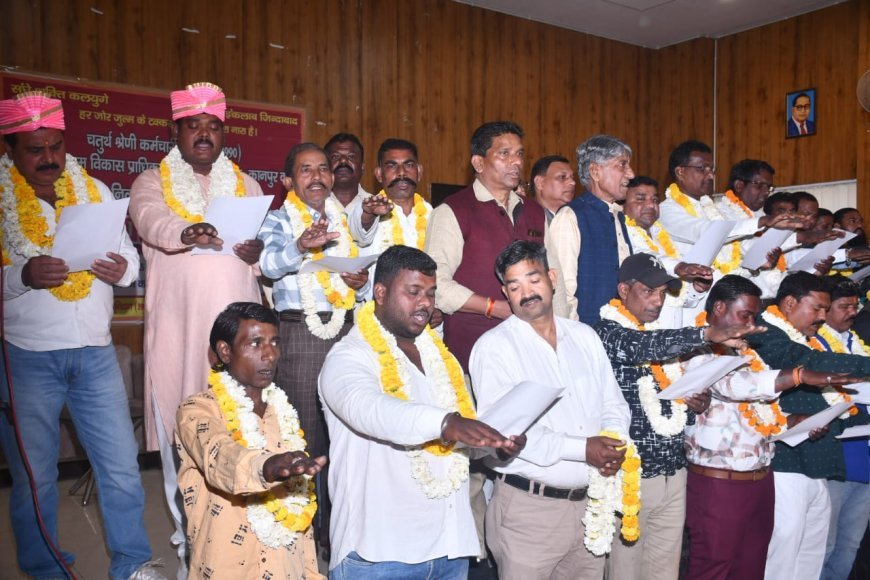 Kanpur News: चतुर्थ श्रेणी कर्मचारी यूनियन नगर निगम विकास प्राधिकरण जलकल कानपुर का शपथ ग्रहण कार्यक्रम