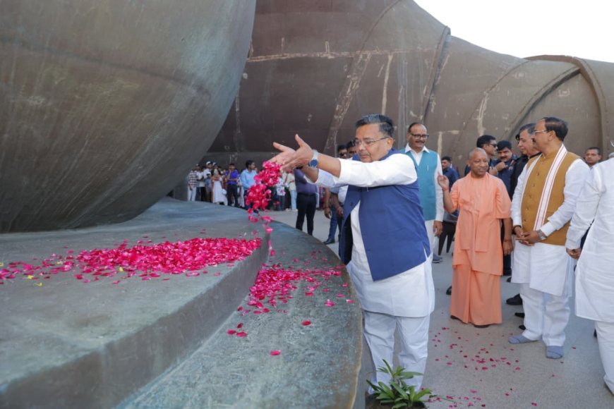 उत्तर प्रदेश के मुख्यमंत्री योगी आदित्यनाथ और पर्यटन मंत्री जयवीर सिंह ने राज्य मंत्रिमंडल के अन्य सदस्यों के साथ लौह पुरुष सरदार वल्लभ भाई पटेल की विशाल मूर्ति पर पुष्पांजलि अर्पित की। तत्पश्चात, स्टैच्यू ऑफ यूनिटी परिसर का भ्रमण किया और आयोजन स्थल पर पहुंचे।