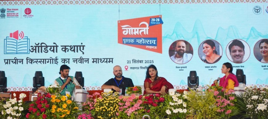 गोमती पुस्तक महोत्सव में अवधी का जलवा रहा। ‘लेखक गंज’ में दिन की शुरुआत ‘ऑडियो कथाएं: प्राचीन किस्सागोई का नया माध्यम’ विषय पर सत्र से हुई। इसमें रामअवतार बैरवा (सहायक निदेशक, आकाशवाणी दिल्ली), विजय कृपलानी (कंटेंट हेड, रेडियो फीवर, लखनऊ) और कहानीकार सबाहत आफरीन ने भाग लिया। इसमें ऑडियो कहानियों की शुरुआत, कोविड-19 काल में श्रोताओं की बढ़ोतरी, चुनौतियों और बदलते सामाजिक परिदृश्य में इनके महत्व पर चर्चा हुई।