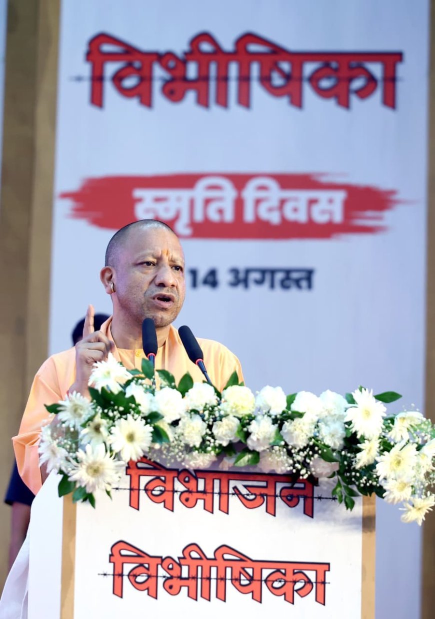 मुख्यमंत्री योगी आदित्यनाथ ने विभाजन विभीषिका स्मृति दिवस के अवसर पर कहा कि 14 अगस्त 1947 को जो हुआ, वह एक राष्ट्रीय त्रासदी थी, जिसे कभी भुलाया नहीं जा सकता। लाखों लोग अपने घरों से बेघर हुए, परिवारों को बिखरते देखा गया और उस समय की सत्ता ने इस विभाजन को प्रशासनिक निर्णय बताकर जनता की आंखों में धूल झोंकी।