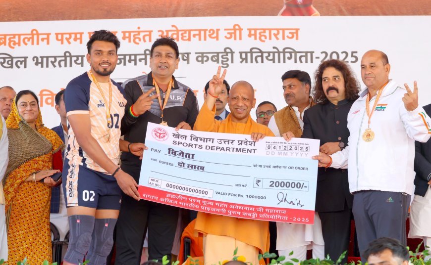 Lucknow : सीएम योगी ने अखिल भारतीय प्राइजमनी पुरुष कबड्डी प्रतियोगिता-2025 में विजेताओं को चेक व ट्रॉफी प्रदान की, कहा- प्रतिभाएं वर्ल्ड चैम्पियनशिप में पदक प्राप्त कर रहीं