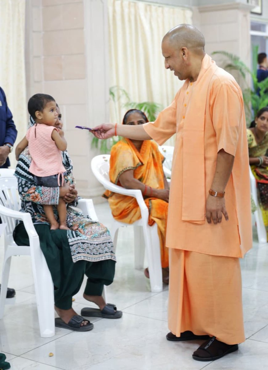 'जनता दर्शन' में कई फरियादियों के साथ बच्चे भी आए, जिन्हें मुख्यमंत्री योगी आदित्यनाथ ने दुलार भी किया।