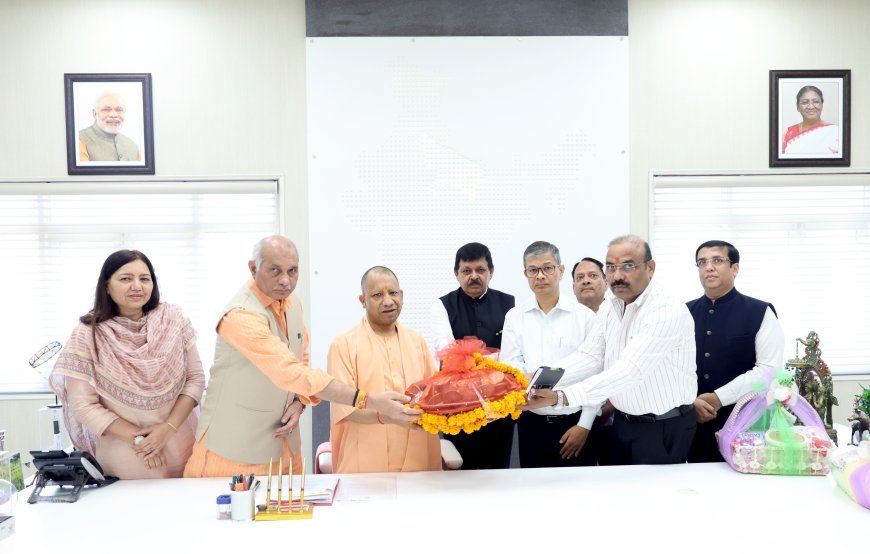 Lucknow : पशुधन मंत्री धर्मपाल सिंह ने मुख्यमंत्री को प्रतीकात्मक रूप से गोदीप एवं गौ उत्पाद भेंट किए