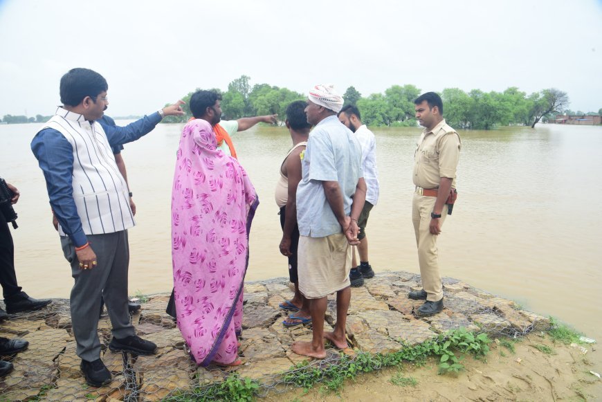 Lucknow : मंत्री नन्दी ने करछना तहसील के बाढ़ प्रभावित कटका गांव का किया निरीक्षण