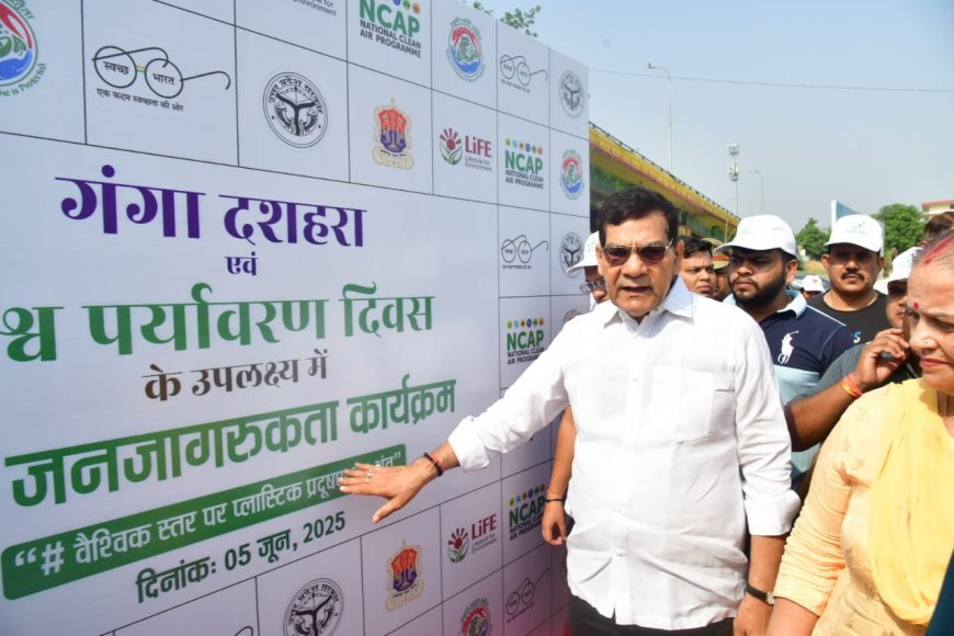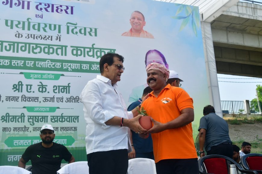 Lucknow News: विश्व पर्यावरण दिवस पर नगर विकास मंत्री ए0के0 शर्मा ने गोमती नदी घाट की सफाई की, मंत्री ने 06 कूड़ा उठान गाड़ियों को हरी झंडी दिखाकर किया रवाना, आठ किलोमीटर लंबी जलधारा की सफाई