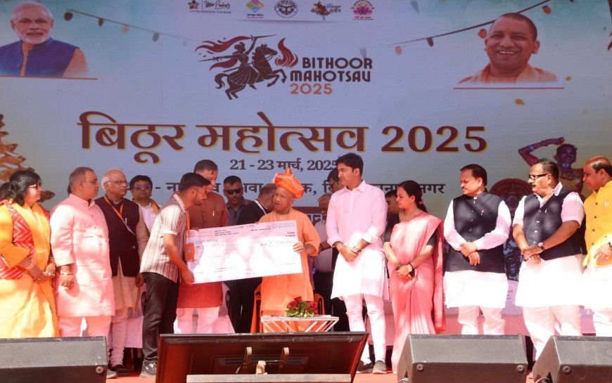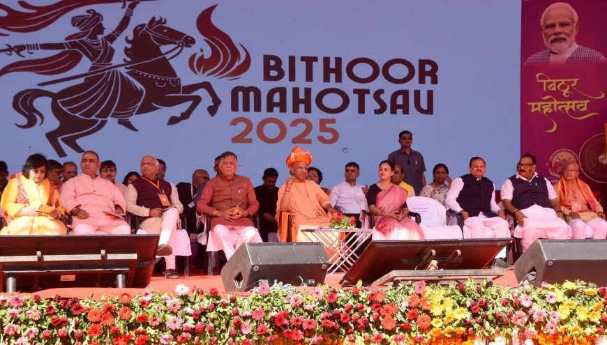 CM योगी (Yogi) आदित्यनाथ रविवार को बिठूर महोत्सव में पहुंचे। वीर शिरोमणि नानाजी राव पेशवा को समर्पित महोत्सव में CM युवा उद्यमी विकास अभियान के तहत कानपुर के 1302 उद्यमियों को 5.42 करोड़ का ऋण वितरण, नवनियुक्त 329 आंगनबाड़ी कार्यकत्रियों को नियुक्ति पत्र तथा CM कृषक दुर्घटना कल्याण योजना के 127 लाभार्थियों को 6.35 करोड़ सहायता राशि प्रदान की गई। CM ने प्रदर्शनी का अवलोकन तथा कवि साहिर योगेश की पुस्तक 'हम करें राष्ट्र आराधन' व मोहन जी द्वारा चरित 'रण धुरंधर नाना साहब पेशवा' का विमोचन किया। CM ने महाराष्ट्र से नानाराव पेशवा की जयंती मनाने बिठूर आए लोगों का स्वागत भी किया।
