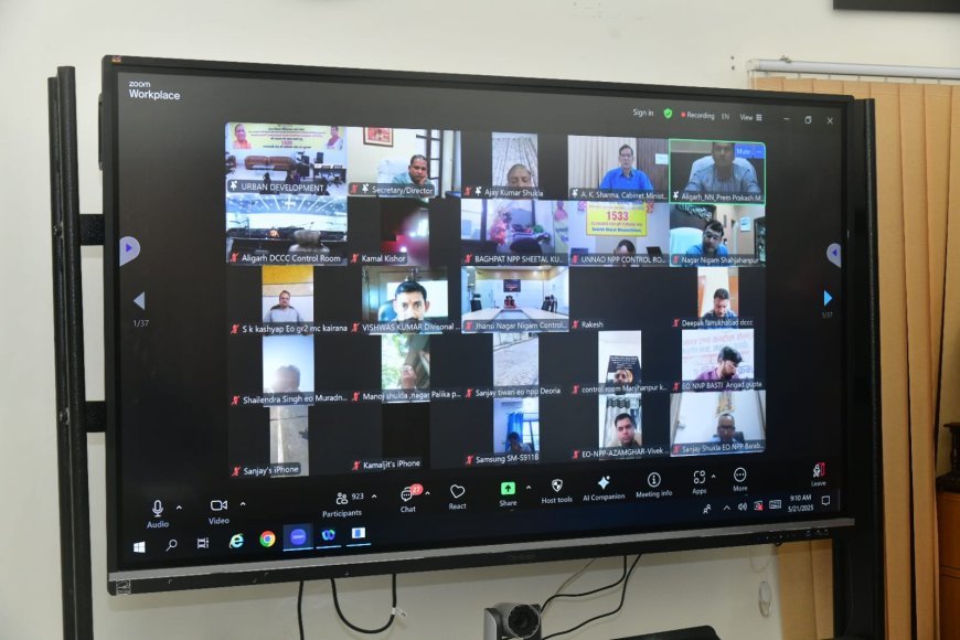 बैठक में प्रमुख सचिव नगर विकास अमृत अभिजात, सचिव नगर विकास अजय कुमार शुक्ला, सचिव एवं निदेशक नगर विकास अनुज कुमार झा, सभी नगर निगमों के नगर आयुक्त, नगर पालिका परिषदो और नगर पंचायतो के अधिशासी अधिकारी, जल निगम के अधिकारी एवं नगरीय निकायों के अन्य अधिकारियों ने वर्चुअल प्रतिभाग़ किया।