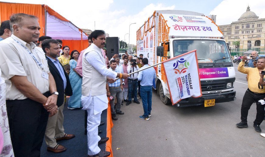 Lucknow : रोजगार महाकुम्भ-2025 का शुभारंभ- मंत्री अनिल राजभर ने झण्डी दिखाकर प्रचार रथ को किया रवाना