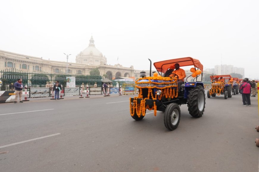 Lucknow : CM ने प्रगतिशील किसानों, एफ0पी0ओ0 व कृषि वैज्ञानिकों को किया सम्मानित, कृषक उपहार योजना के तहत किसानों को ट्रैक्टर वितरित कर झण्डी दिखाकर रवाना किया