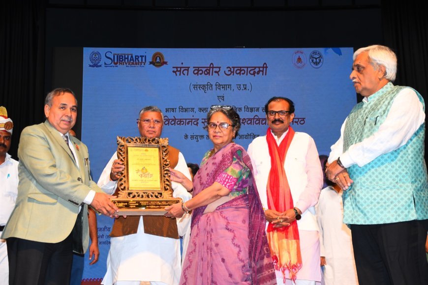 लखनऊ/मेरठ : स्वामी विवेकानंद सुभारती विश्वविद्यालय मेरठ में भाषा विभाग, कला एवं सामाजिक विज्ञान संकाय, सुभारती विश्वविद्यालय, संत कबीर अकादमी (संस्कृति विभाग, उत्तर प्रदेश) के संयुक्त तत्त्वावधान में रंग कबीरः संगोष्ठी एवं सांस्कृतिक उत्सव का शुभारंभ हुआ। यह आयोजन 11 से 13 सितम्बर 2025 तक तीन दिवसीय स्वामी विवेकानंद सुभारती विश्विद्यालय, सुभारतीपुरम, मेरठ में आयोजित किया जा रहा है। इस कार्यक्रम के उद्धाटन सत्र में उत्तर प्रदेश सरकार के होमगार्ड्स विभाग एवं नागरिक सुरक्षा विभाग के राज्यमंत्री (स्वतंत्र प्रभार)धर्मवीर प्रजापति, श्रम एवं सेवायोजन मंत्री उत्तर प्रदेश डॉ. रघुराज सिंह, संत कबीर अकादमी के निदेशक अतुल द्विवेदी, स्वामी विवेकानंद सुभारती विश्वविद्यालय की कुलाधिपति डॉ. स्तुति नारायण कक्कड़, कुलपति प्रोफे.(डॉ.) पी. के शर्मा के द्वारा पारंपरिक रुप से दीप प्रज्ज्वलन के साथ हुआ।