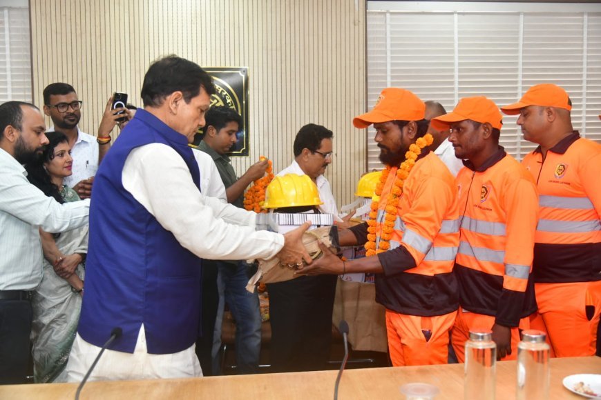 इस अवसर पर मंत्री ए के शर्मा ने अधिकारियों को निर्देशित किया कि नगरीय निकायों में सफाई व्यवस्था और स्वच्छता सेवाओं को और अधिक सुदृढ़ बनाया जाए। उन्होंने कहा कि सफाईकर्मियों के कल्याण के लिए सरकार निरंतर प्रयासरत है और भविष्य में और बेहतर सुविधाएं उपलब्ध कराई जाएंगी। नगर विकास विभाग की अपर निदेशक रितु सुहास,नगर आयुक्त गौरव कुमार एवं नगर विकास विभाग के अन्य अधिकारी सहित बड़ी संख्या में सफाईकर्मी उपस्थित रहे।