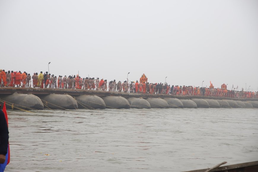 - संगम क्षेत्र और अखाड़ों को गंगा नदी के बीच जोड़ते हैं पीपे के पुल