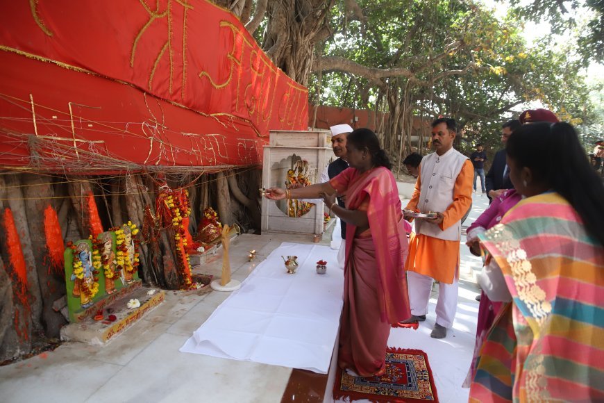राष्ट्रपति द्रौपदी मुर्मू ने संगम में पवित्र स्नान के उपरांत धार्मिक आस्था को और अधिक मजबूती देने के लिए अक्षयवट का दर्शन-पूजन किया। सनातन संस्कृति में अक्षयवट को अमरता का प्रतीक माना जाता है। यह हिन्दू धर्म का एक महत्वपूर्ण स्थल है, जिसकी महत्ता पुराणों में भी वर्णित है। इसके अलावा वे यहां सरस्वती कूप के दर्शन को भी पहुंचीं।