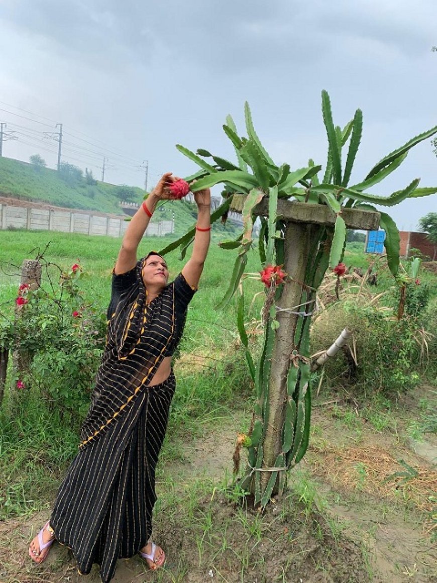 Lucknow: गांव में स्ट्रॉबेरी, ड्रैगनफ्रूट और रागी से तीन लाख तक कमा रहीं इटावा की मंत्रवती शाक्य।