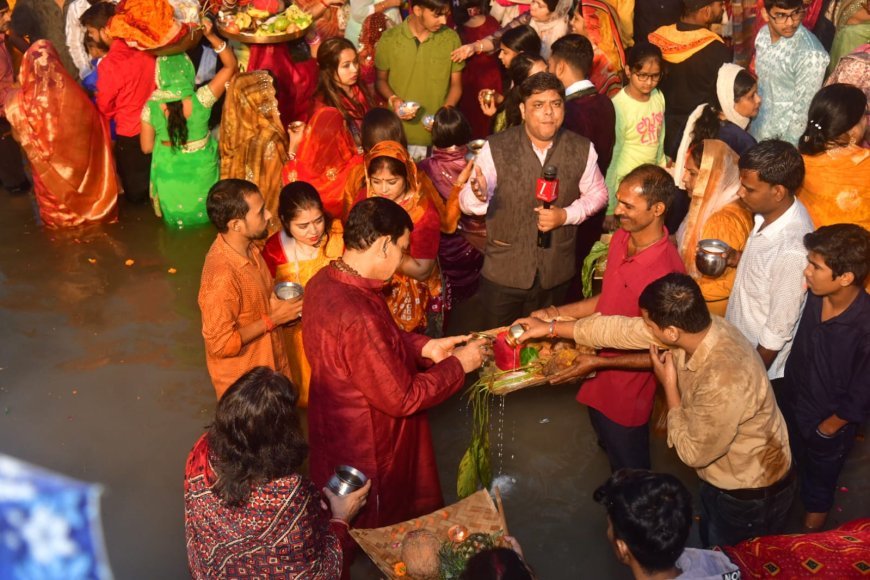 लखनऊ: सूर्य उपासना के महापर्व छठ पर नगर विकास एवं ऊर्जा मंत्री ए.के. शर्मा लक्ष्मण मेला घाट पहुंचे। उन्होंने भगवान सूर्य को अर्घ्य दिया और प्रदेशवासियों की सुख, शांति, समृद्धि तथा अच्छे स्वास्थ्य की कामना की। श्रद्धालुओं की भीड़ और हल्की बारिश के बीच मंत्री ने पूजन में हिस्सा लिया और लोगों से बातचीत की। उन्होंने कहा कि छठ पर्व भारतीय संस्कृति का प्रतीक है जो अनुशासन, समर्पण, स्वच्छता और पर्यावरण संरक्षण का संदेश देता है।