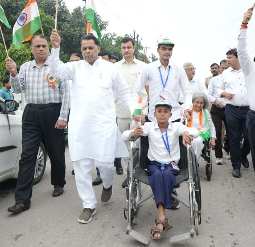 मंत्री नरेंद्र कश्यप ने किया तिरंगा यात्रा नेतृत्व, 600 से ज़्यादा दिव्यांगजनों ने तिरंगा यात्रा में भाग लिया।