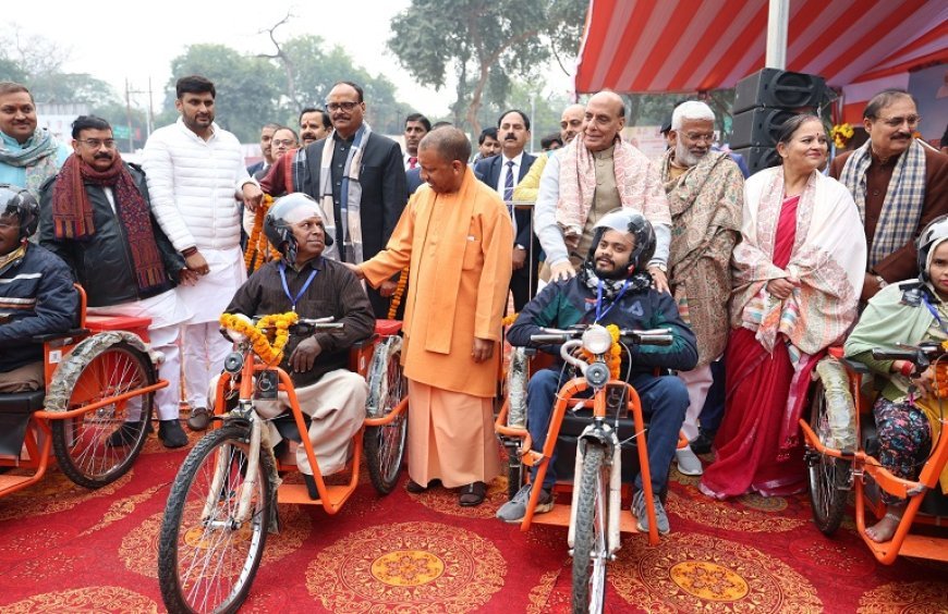 Lucknow News: रक्षा मंत्री राजनाथ सिंह ने मुख्यमंत्री योगी आदित्यनाथ के साथ किया 'अटल स्वास्थ्य मेला' का शुभारंभ।