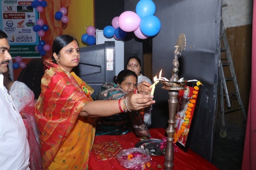 कार्यक्रम का शुभारंभ मुख्य अतिथि भाजपा महिला मोर्चा जिलाध्यक्ष अलका गुप्ता, विशेष अतिथि कवियत्री अंजू सिंह, वरिष्ठ समाजसेवी निरमा देवी, और ब्लॉक प्रमुख बाबन धर्मेंद्र सिंह द्वारा मां सरस्वती के चित्र पर दीप प्रज्ज्वलन के साथ हुआ।
