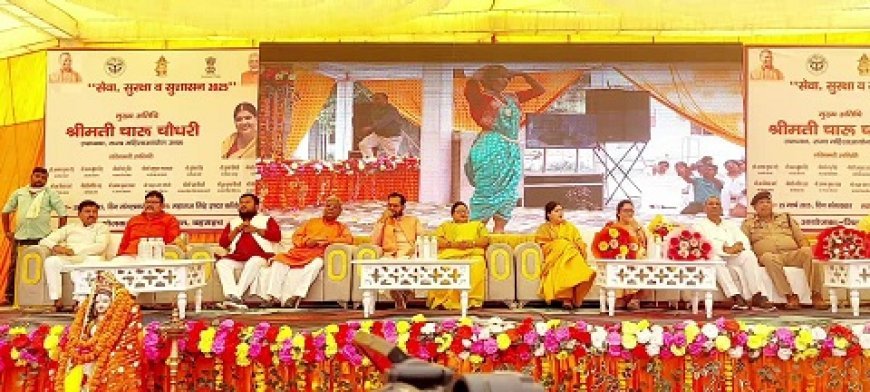 कार्यक्रम को सम्बोधित करती हुई मुख्य अतिथि चारू चौधरी ने कहा कि आज का यह अवसर प्रदेश के लिए गौरव का पल है। चौधरी ने प्रदेश सरकार के सेवा, सुरक्षा व सुशासन की नीति के आठ वर्ष पूर्ण होने पर प्रदेशवासियों को बधाई दी। उन्होंने कहा कि उ0प्र0 में विगत 08 वर्षों में विकास को गति प्रदान हुई है, जिससे प्रदेश आज देश की अर्थव्यवस्था का ग्रोथ इंजन बन कर उभरा है। आज प्रदेश में 122 चीनी मिले संचालित हैं, गन्ना, खाद्यान्न, फल एवं सब्ज़ी उत्पादन में आज प्रदेश शीर्ष पर है। उन्होंने कहा कि आज उत्तर प्रदेश की कानून व्यवस्था एक मॉडल के रूप में प्रस्तुत हुई है। महिला सम्बन्धी अपराधों में संलिप्त अपराधियों को सजा दिलाने में उत्तर प्रदेश, देश में नम्बर एक राज्य है।