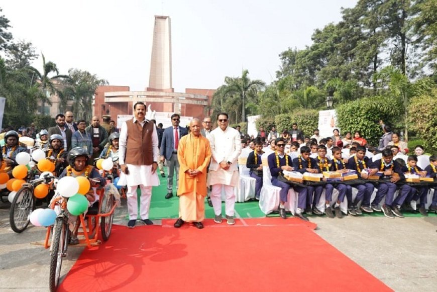 Lucknow: विश्व दिव्यांग दिवस पर सीएम योगी ने 30 प्रतिभागियों को किया सम्मानित, 500 दिव्यांगों को बांटी ट्राईसाइकिल।
