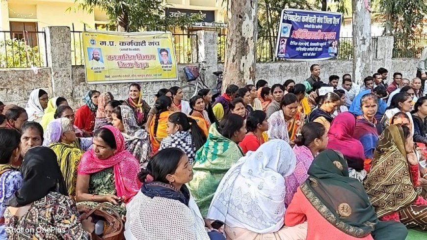 Madhya Pradesh News: 14 माह से नहीं दिया अंशकालिक कर्मचारियों का वेतन- कर्मचारीयों ने की अनिश्चितकालीन हड़ताल, दी आत्महत्या की चेतावनी।