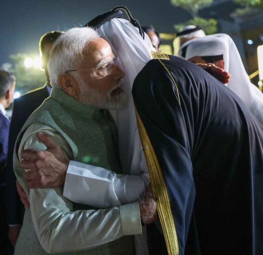 देश के प्रधानमंत्री नरेंद्र मोदी (Prime Minister Narendra Modi) 17 फरवरी को दिल्ली एयरपोर्ट पर पहुंचे जहां पर कतर के अमीर शेख तमिम बिन हमद अल थानी का स्वागत करने के लिए पहुंच गए। जैसे ही अमीर प्लेन से नीचे उतर कर आए वैसे ही प्रधानमंत्री नरेंद्र मोदी (Prime Minister Narendra Modi) ने गर्मजोशी के साथ उनको गले लगाया और उनका स्वागत किया। इस दौरान विदेश मंत्री जयशंकर भी मौजूद रहे जहां उन्होंने भी शेख का स्वागत किया। शेख तमिम बिन हमद अल थानी 17-18 फरवरी तक भारत की राज्य यात्रा पर आए हैं। इस यात्रा को लेकर पीएम नरेंद्र मोदी ने X पर एक पोस्ट को शेयर किया जिसमें उन्होंने लिखा "अपने भाई, कतर के अमीर महामहिम शेख तमीम बिन हमद अल थानी का स्वागत करने के लिए हवाई अड्डे पर गया। भारत में उनके सफल प्रवास की कामना करता हूं और कल होने वाली हमारी मुलाकात का इंतजार कर रहा हूं।" इसी के साथ-साथ उन्होंने मुलाकात की कुछ फोटो को भी शेयर किया है।