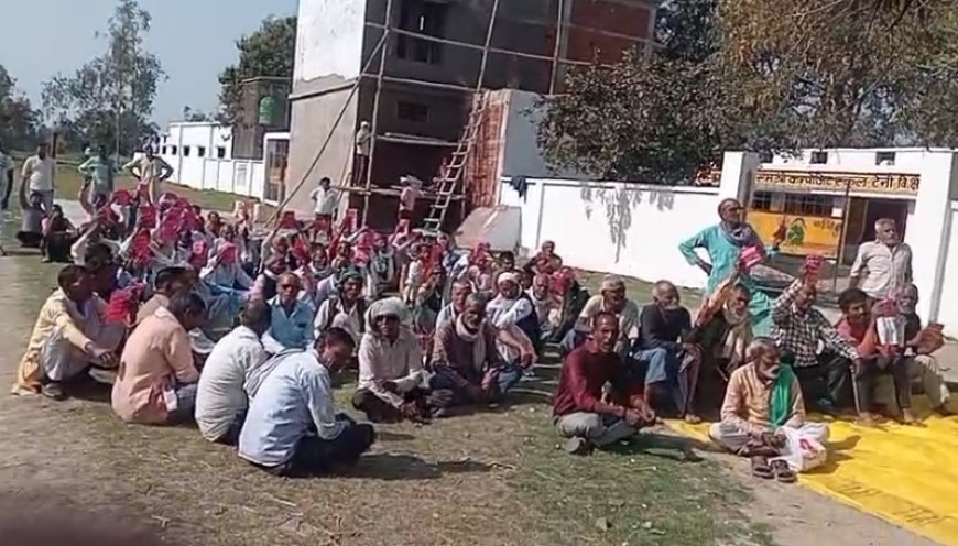 Hardoi: हरदोई के टेनी गांव में चकबंदी चौपाल का विरोध, किसानों ने लगाए नारे।