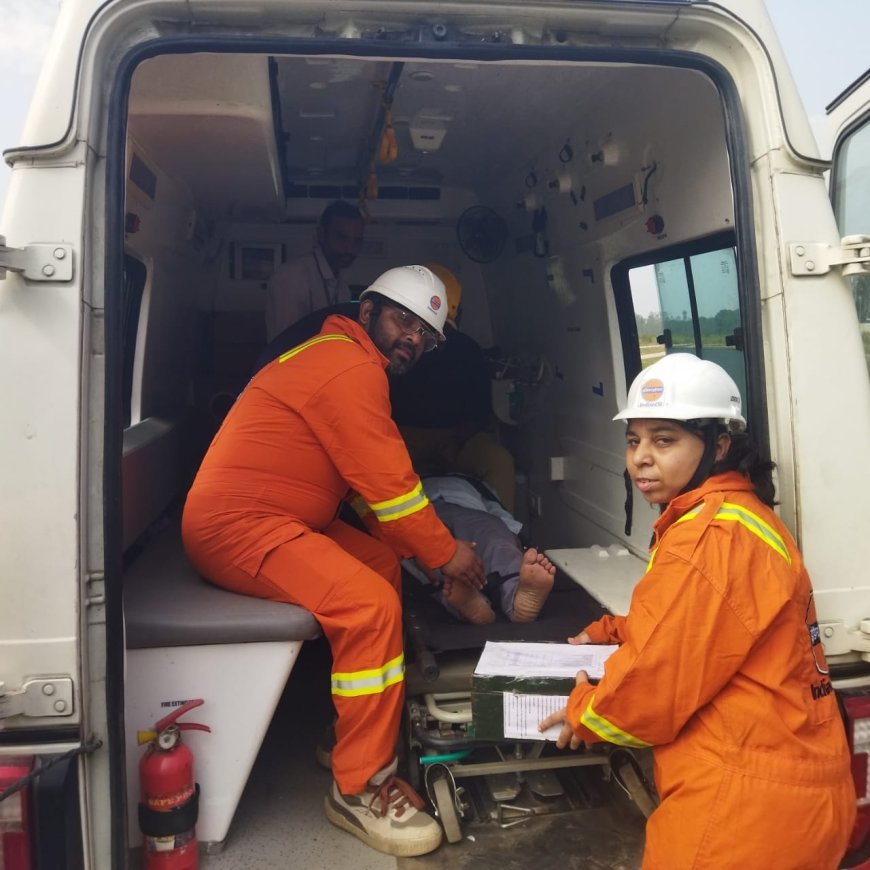 ये सिखाया गया इसके साथ ही आग लगने पर एक कर्मचारी के झुलस जाने पर उसे किस प्रकार प्राथमिक उपचार दिया जाता है और उसके बाद एम्बुलेंस मे किस प्रकार से चिकित्सा सुविधा दी जाती है ये समझाया गया। इस दौरान मुख्य पृचालन प्रबन्धक पुष्पेंद्र कुमा,2IC नवनीत कुमार, मैन लाइन इंचार्ज पियूष कुमार गुप्ता, संचालक आशीष वर्मा, एफएसओ ऋषभ कुमार, चिकित्सक डॉ शुभांक वसिष्ठ अपने सहयोगी और अन्य सुरक्षा कर्मी मौजूद रहे।