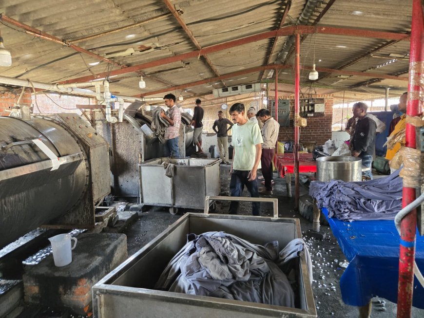 निरीक्षण के दौरान प्लांट आबादी के बीच संचालित मिलता पाया गया। मौके पर पांच में से तीन वाशिंग मशीनें चालू थीं, जिनमें से एक को घरेलू गैस सिलेंडर से बर्नर के जरिए गर्म किया जा रहा था—जो सुरक्षा मानकों का खुला उल्लंघन है।