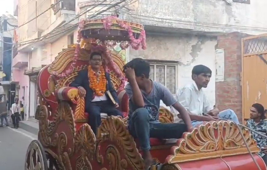 उन्होंने जुलूस पर पुष्प वर्षा कर सामाजिक सौहार्द का संदेश दिया।