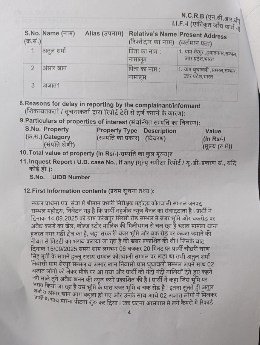Sambhal : न्यूज चैनल संवाददाता के साथ मारपीट, दो नामजद समेत तीन पर मुकदमा दर्ज