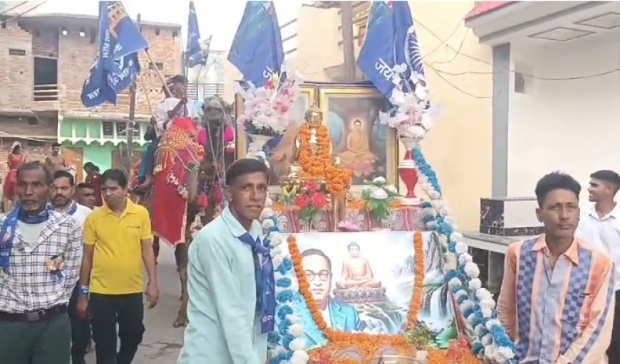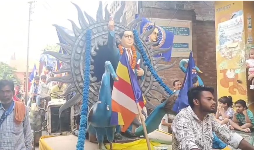 जुलूस में हाथी, घोड़े, ट्रैक्टर और कई सजी-धजी झांकियां शामिल हैं, जिनमें बाबा साहब अंबेडकर के जीवन और उनके संघर्षों को दर्शाया गया है।