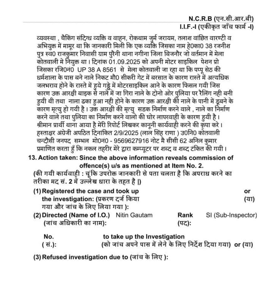 पुलिस ने मामला दर्ज कर भारतीय न्याय संहिता (बीएनएस) 2023 की धारा 106(1) के तहत अज्ञात ठेकेदारों पर मुकदमा कायम किया है। जांच उपनिरीक्षक नितिन गौतम को सौंपी गई है।